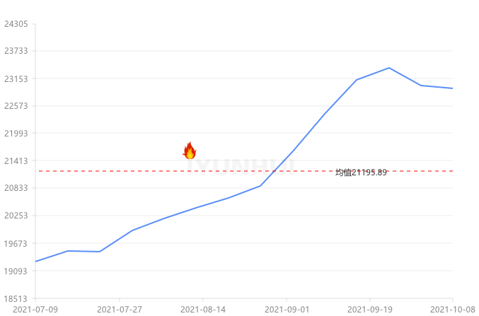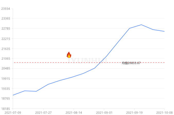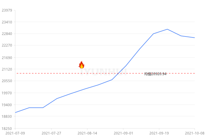 本周(2021.10.4-2021.10.8)上海現(xiàn)貨鋁錠價格周均價22630元/噸,較上周下跌86.25,周內(nèi)最高價22630,最低價22630。
